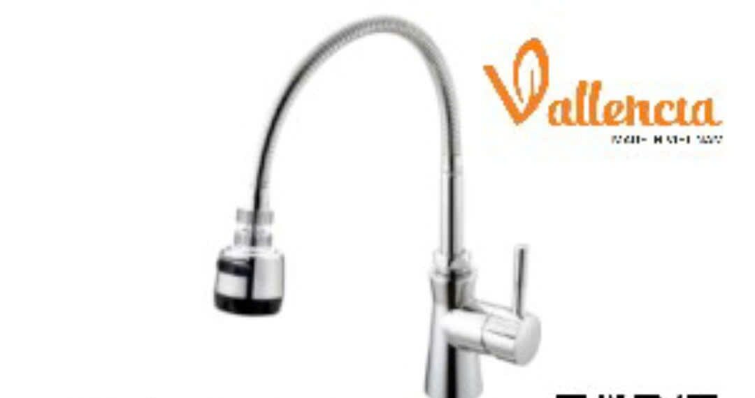 Vòi rửa bát VALLENCIA được làm chủ yếu từ đồng 61% và kẽm,có thể uốn, thiết kế sang trọng, hiện đại